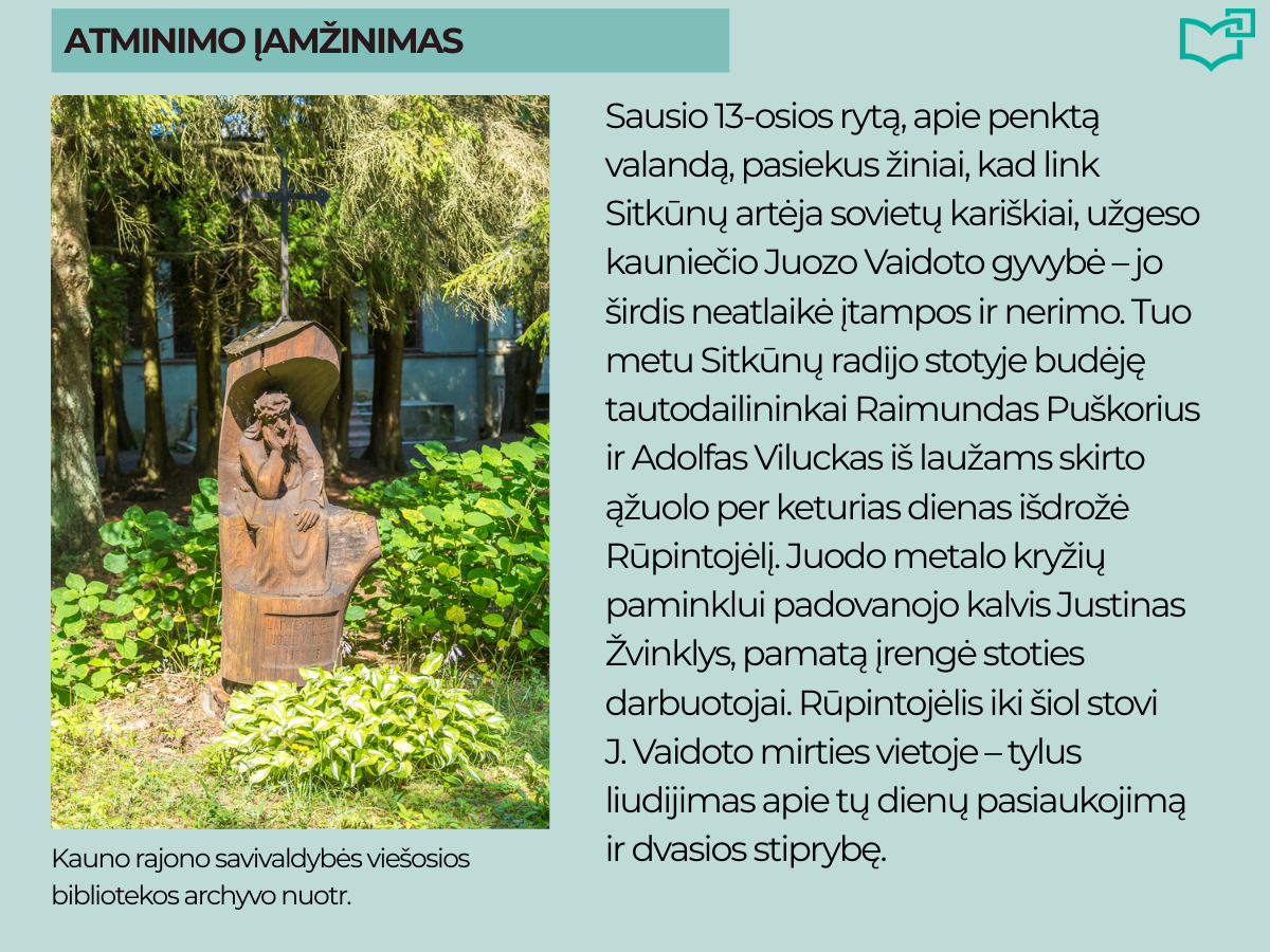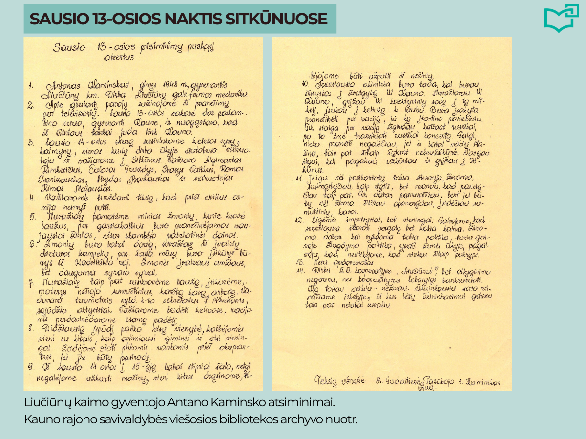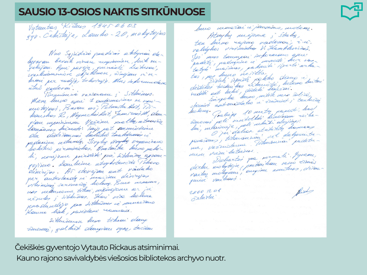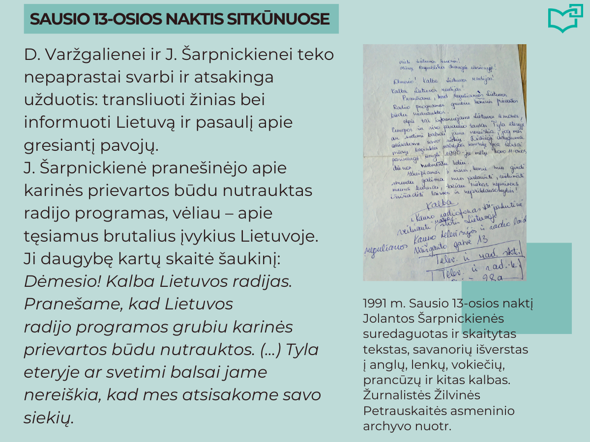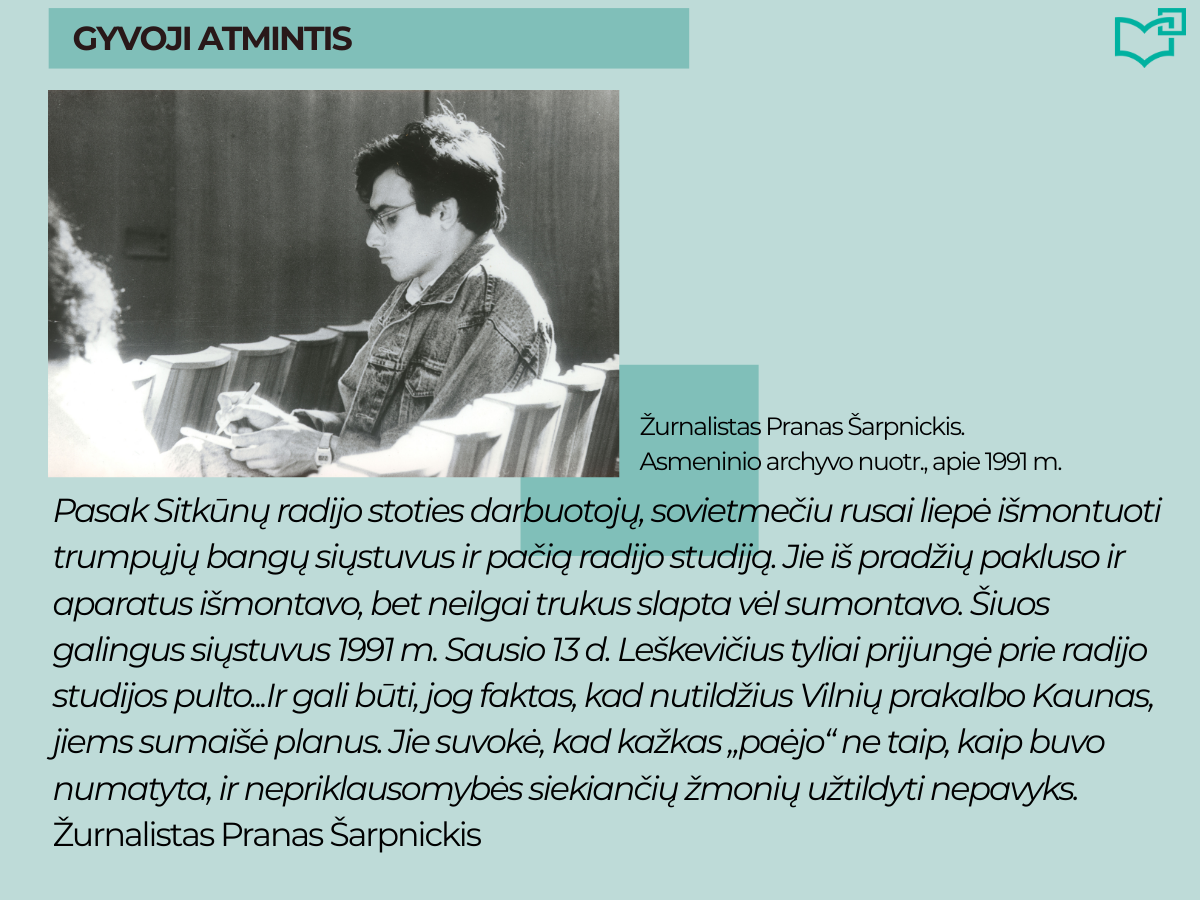 Kviečiame apsilankyti virtualioje parodoje, skirtoje 1991 m. Sausio 13-osios įvykiams Sitkūnuose atminti, lemtingosios Sausio 13-osios nakties 35-osioms metinėms ir Laisvės gynėjų dienai pažymėti. Tai svarbi proga prisiminti dramatiškus įvykius, kai Sitkūnų radijo stotis tapo laisvės balsu ir pirmoji pranešė pasauliui apie tragiškus įvykius Lietuvoje.