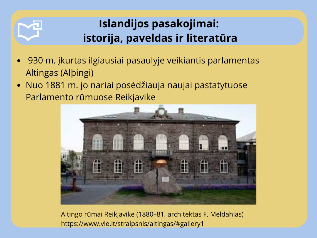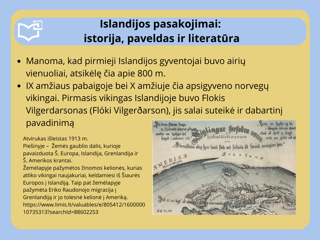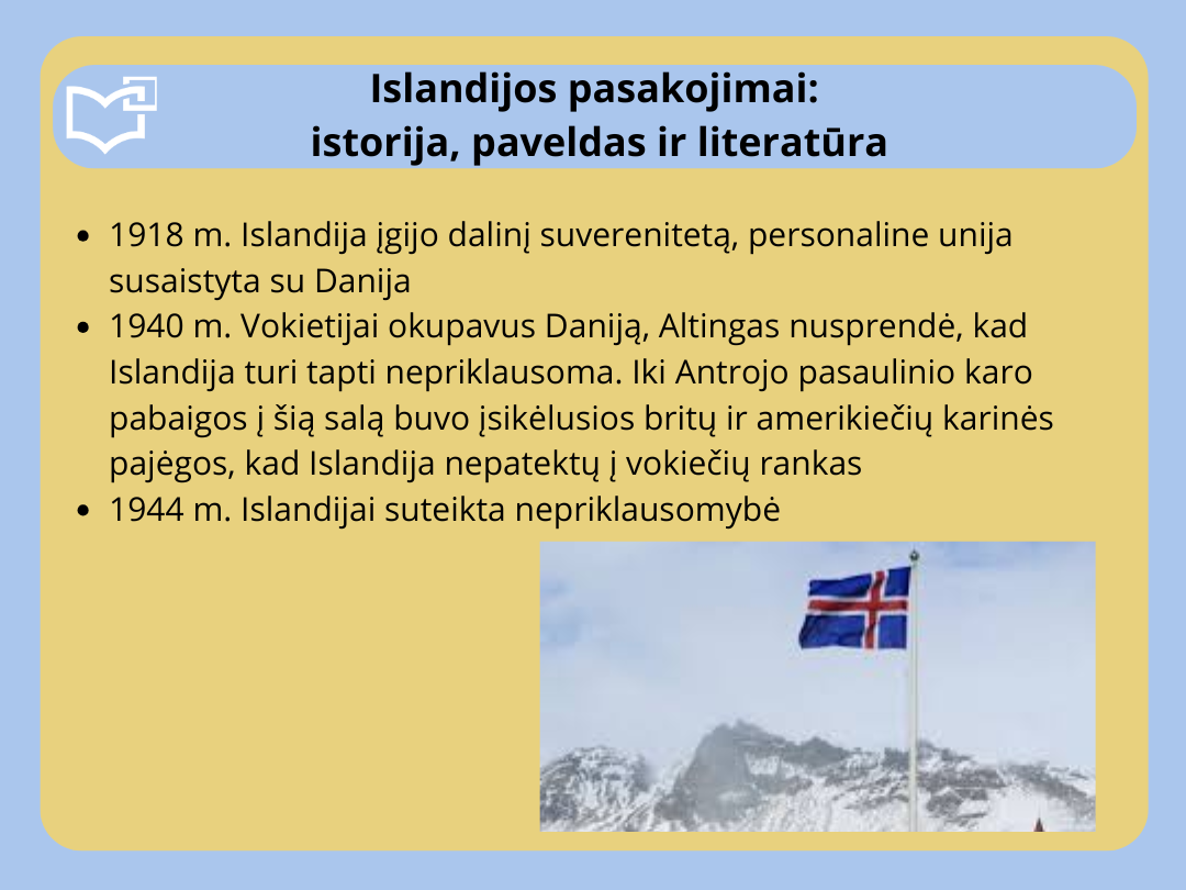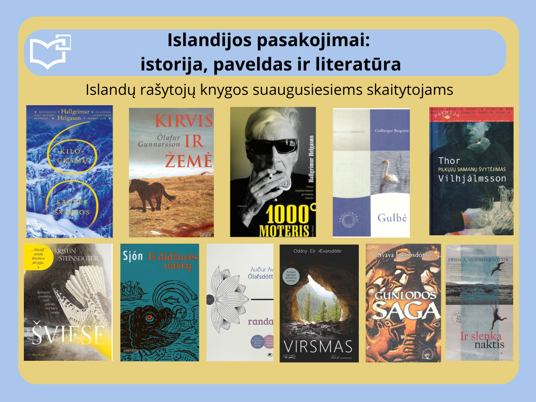 Šių metų Šiaurės šalių literatūros savaitės metu daugiausia dėmesio skiriame Islandų literatūrai, kadangi Islandija švenčia 80 metų sukaktį kaip nepriklausoma respublika. Kviečiame peržiūrėti virtualią parodą „Islandijos pasakojimai: istorija, paveldas ir literatūra“, skirtą Islandijos nepriklausomybės 80-mečiui paminėti.