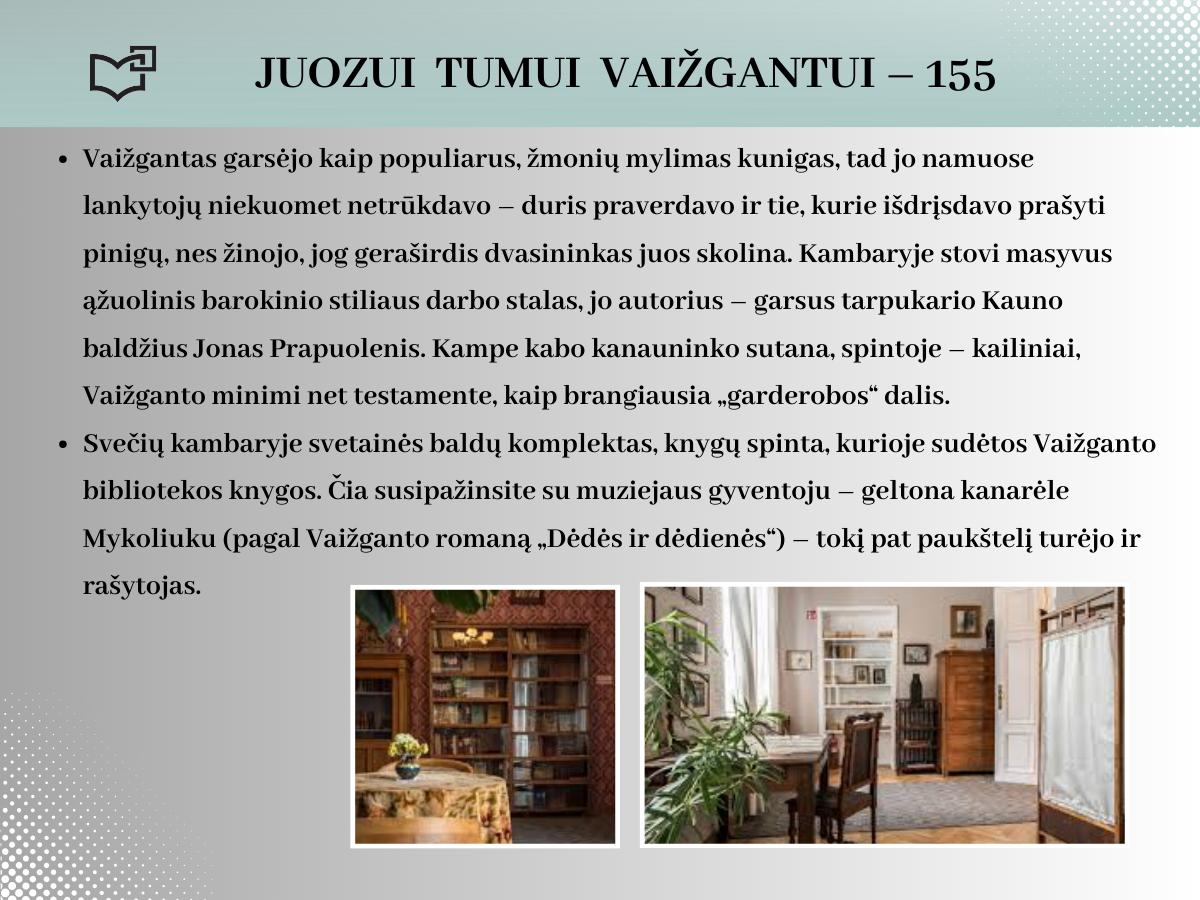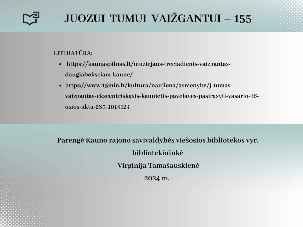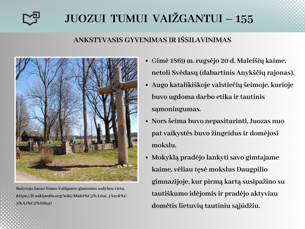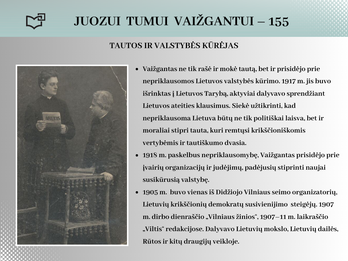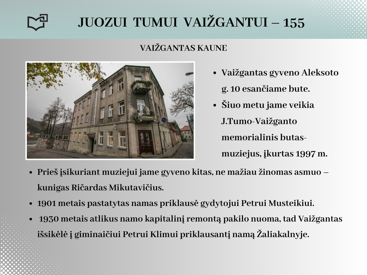 2024 rugsėjo 20-ąją Juozui Tumui-Vaižgantui būtų suėję 155 metai! Spalvinga asmenybė, palikusi ryškių pėdsakų Kaune, kviečia susipažinti – Jums telieka atsiversti bibliotekos parengtą virtualią parodą.