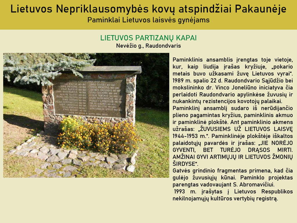 Lietuvos Nepriklausomybės kovų atspindžiai Pakaunėje / Tarptautinei paminklų apsaugos dienai.