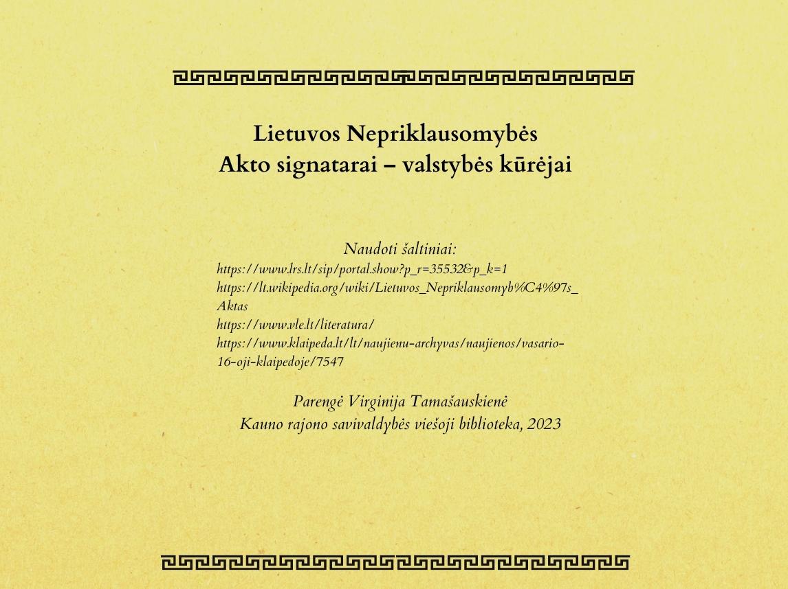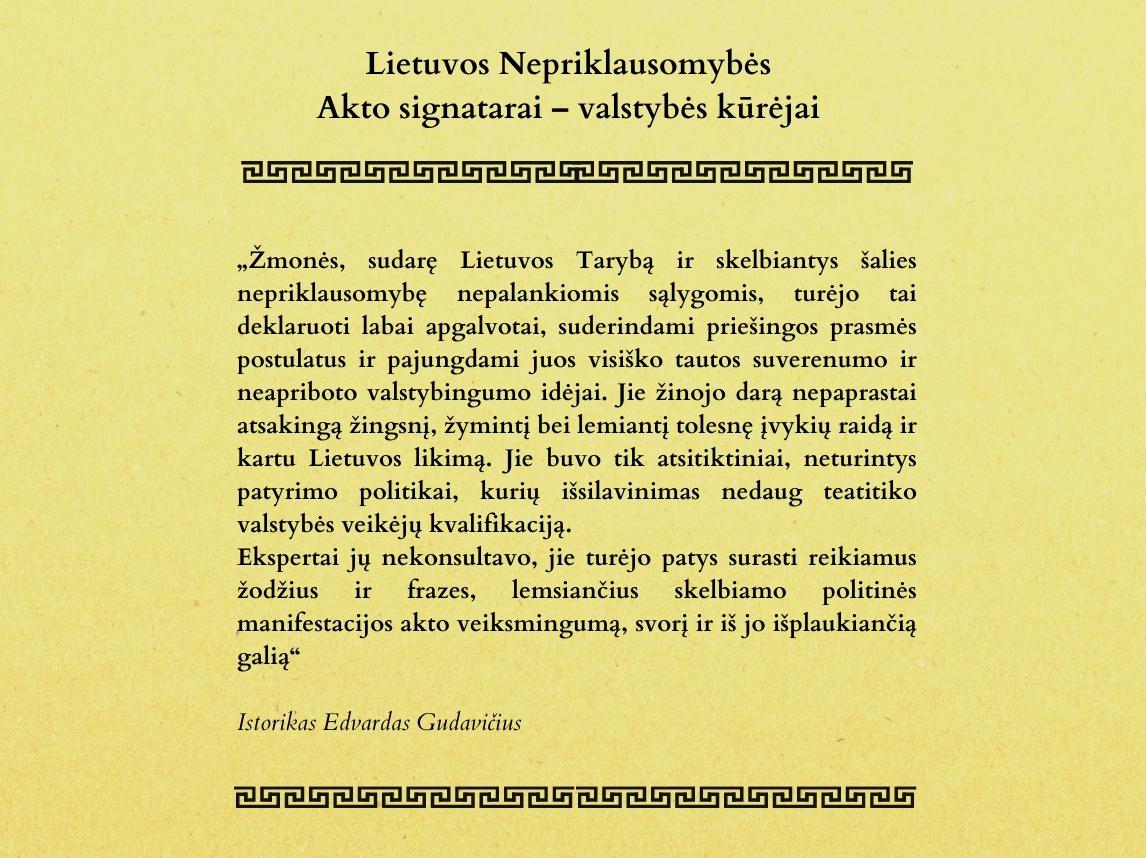 Lietuvos nepriklausomybės akto signatarai – valstybės kūrėjai