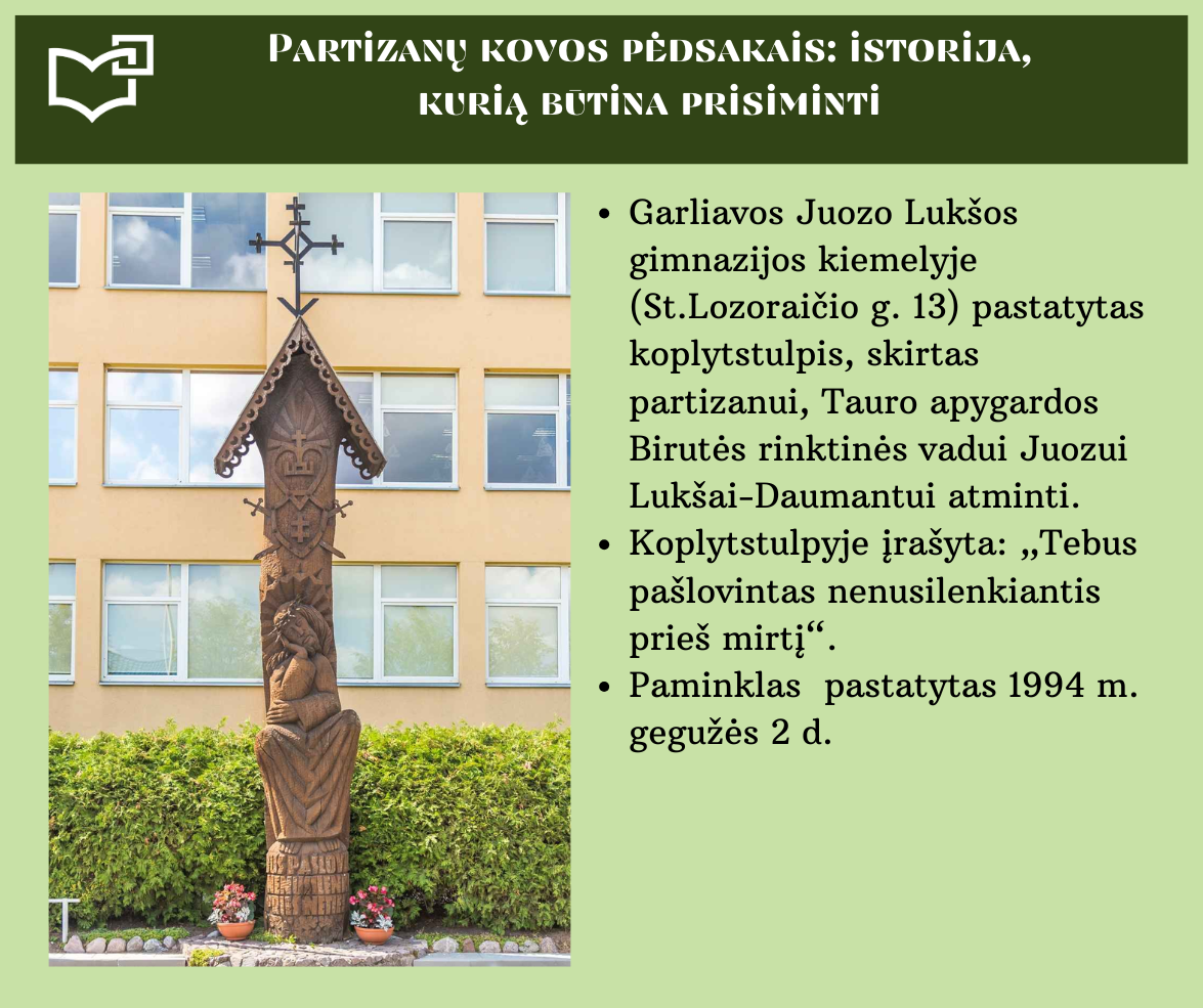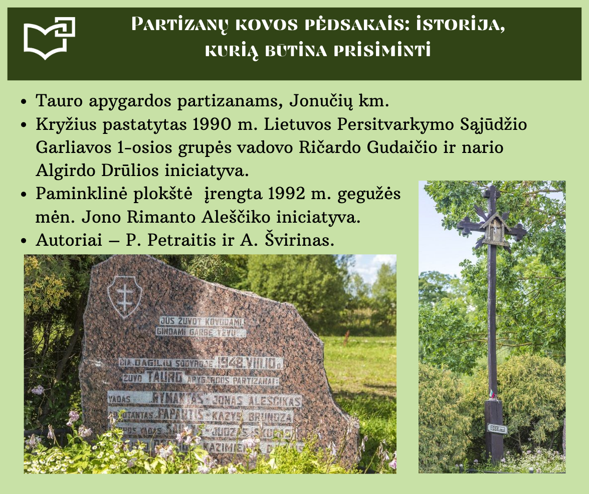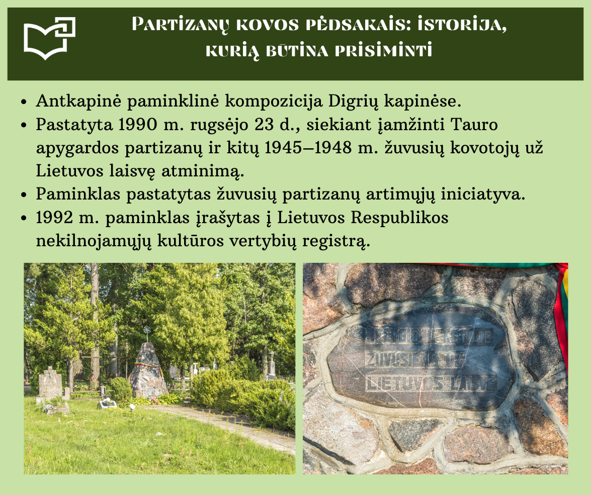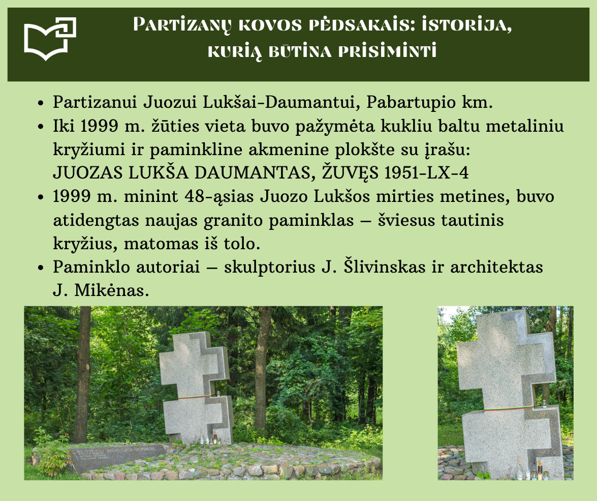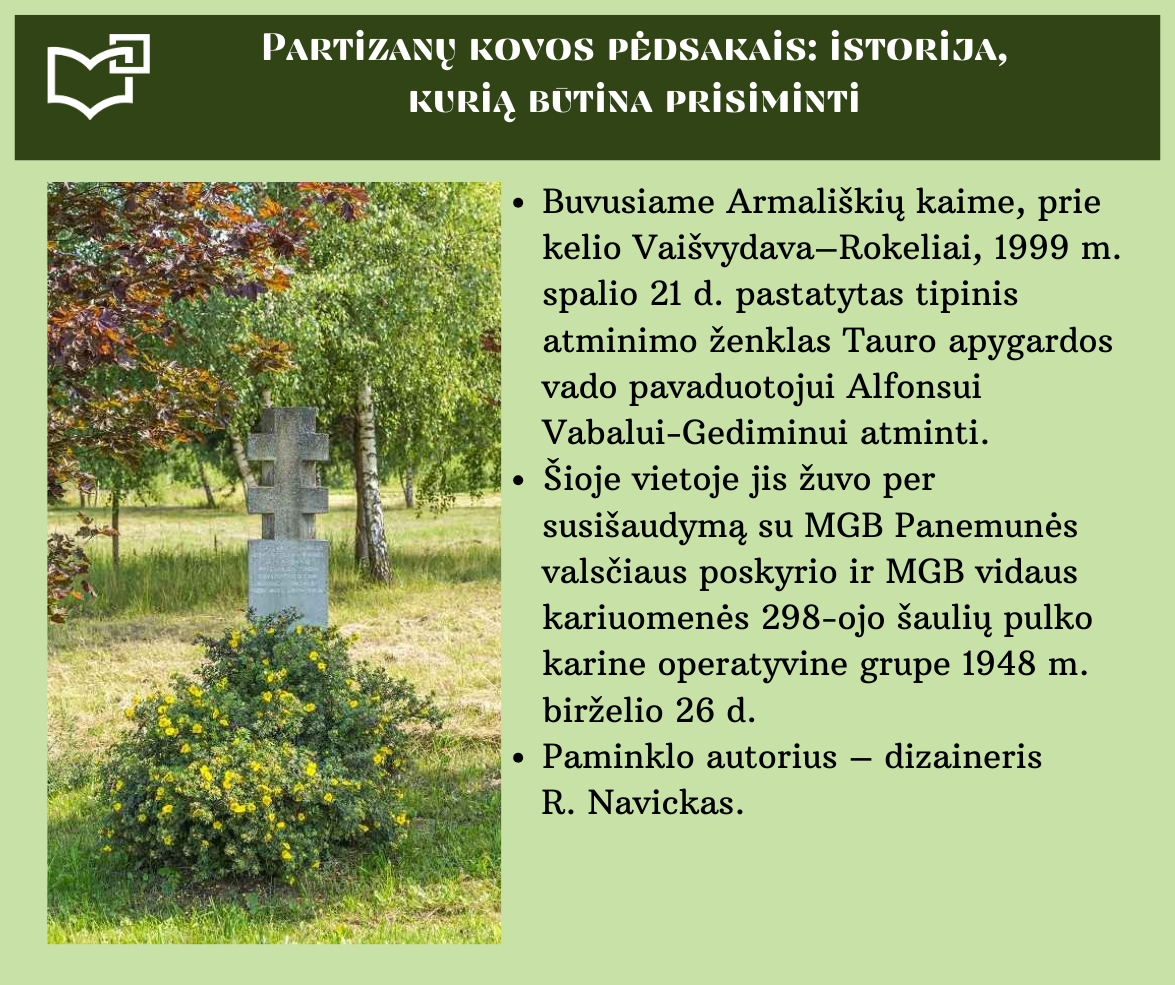 Virtualioje parodoje, skirtoje kovotojų už Lietuvos laisvę atminimui pagerbti, pristatomi paminklai ir atminimo ženklai partizanams – tiems, kurie nepalūžo sunkiausiu istorijos laikotarpiu ir drąsiai stojo ginti Tėvynės.