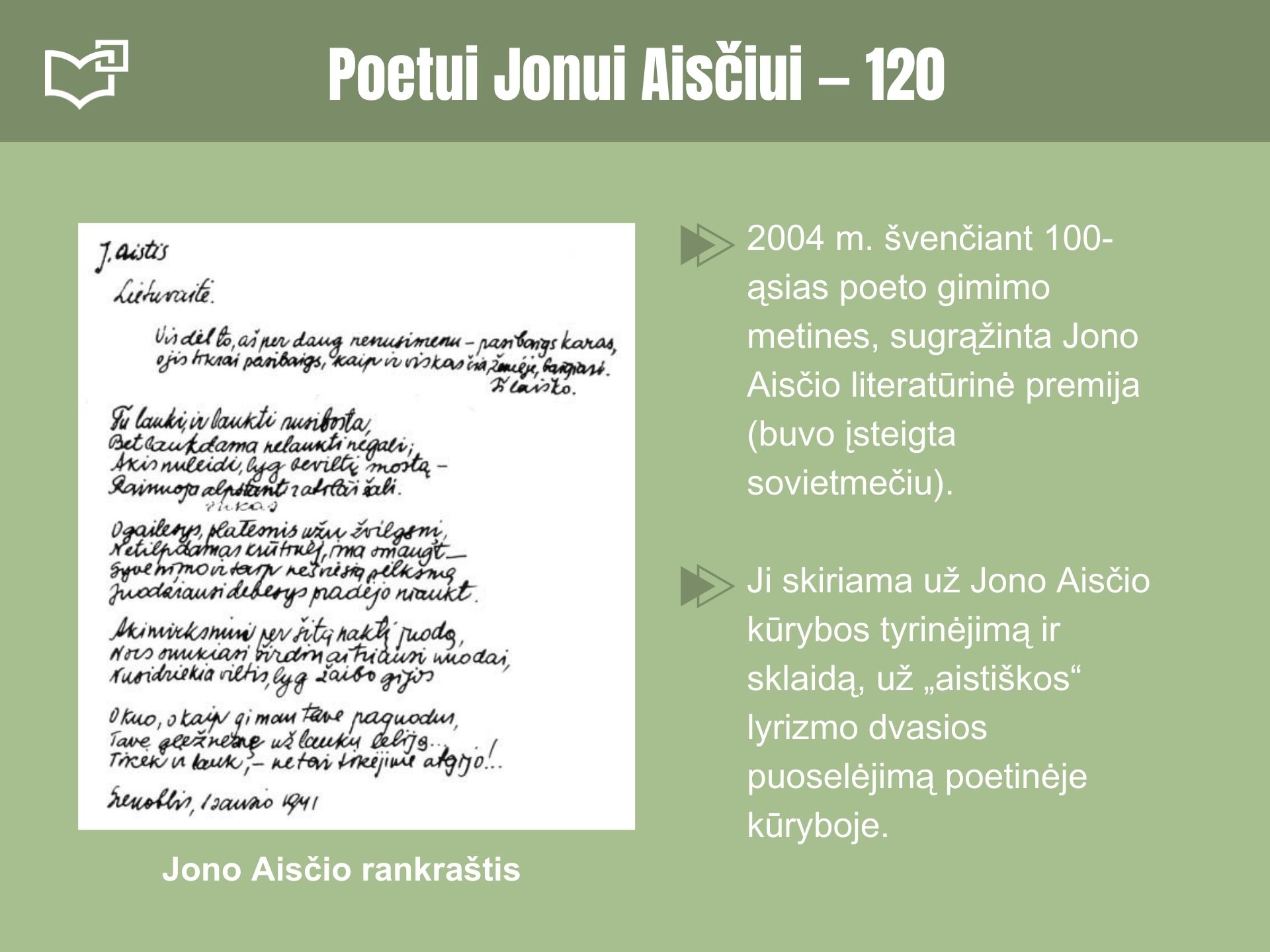 Poetui Jonui Aisčiui – 120