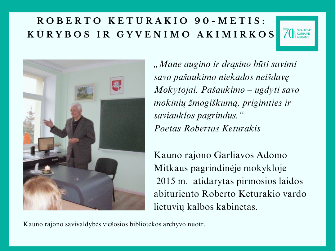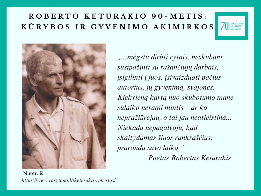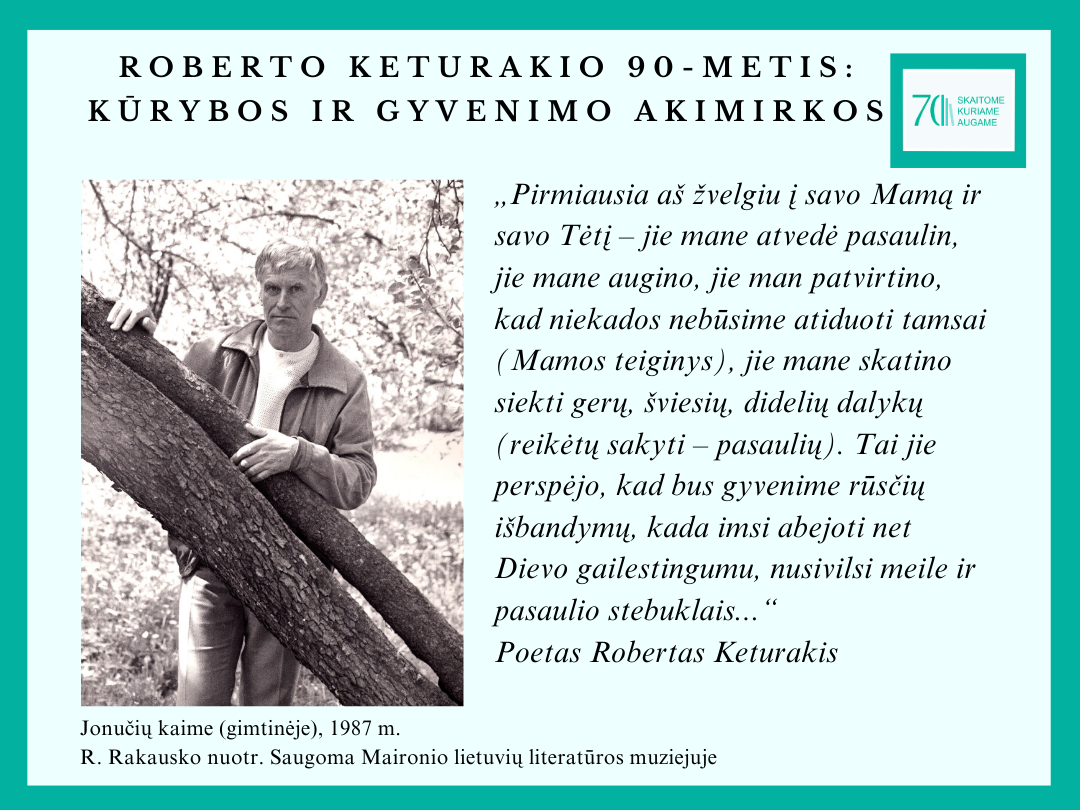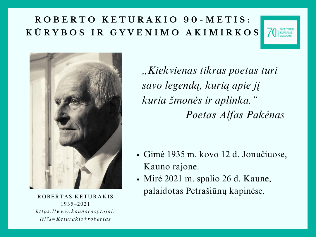 Kovo 12-ąją minėsime garbaus lietuvių poeto Roberto Keturakio 90-ąsias gimimo metines.