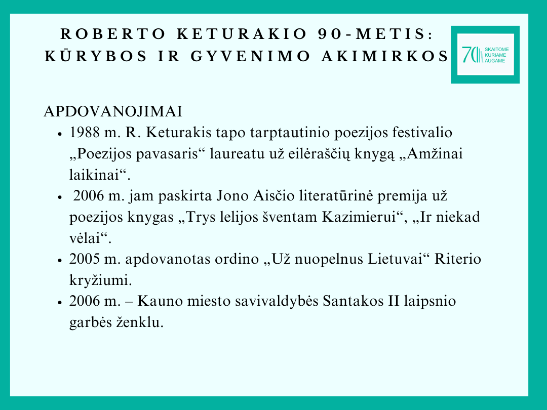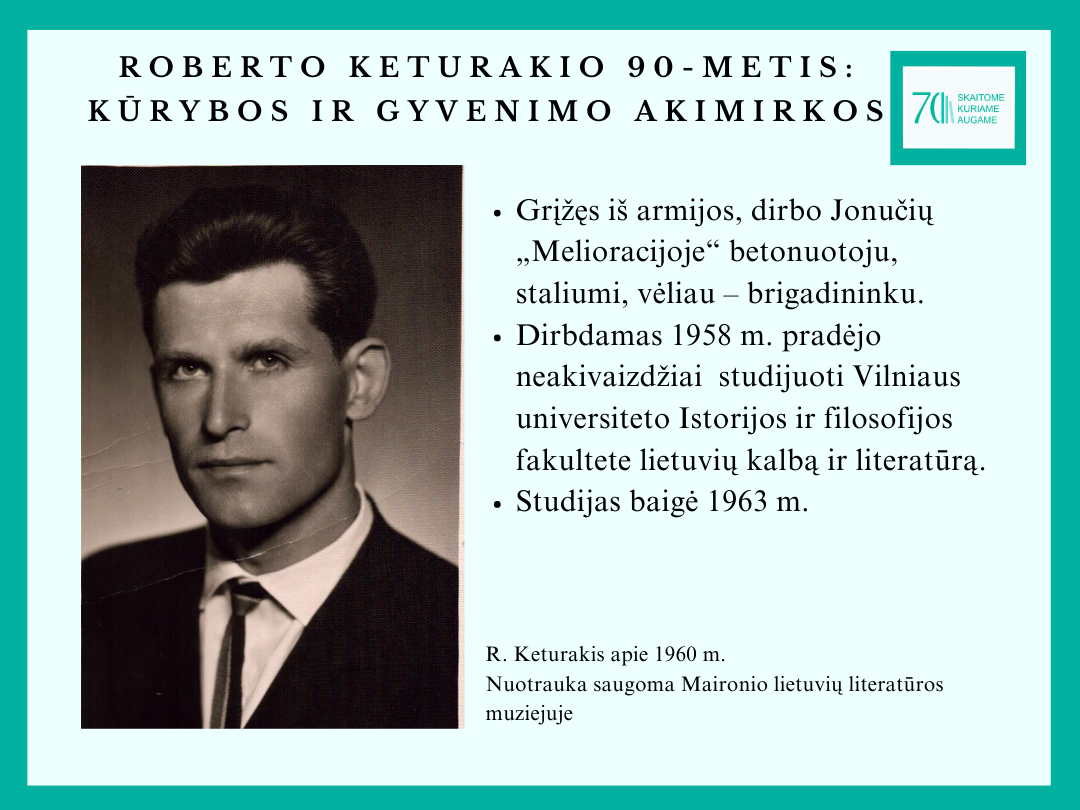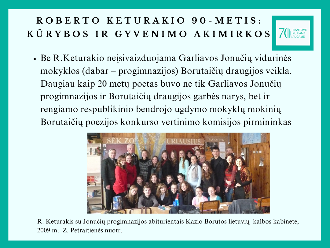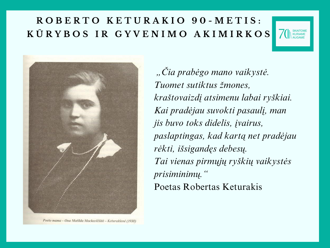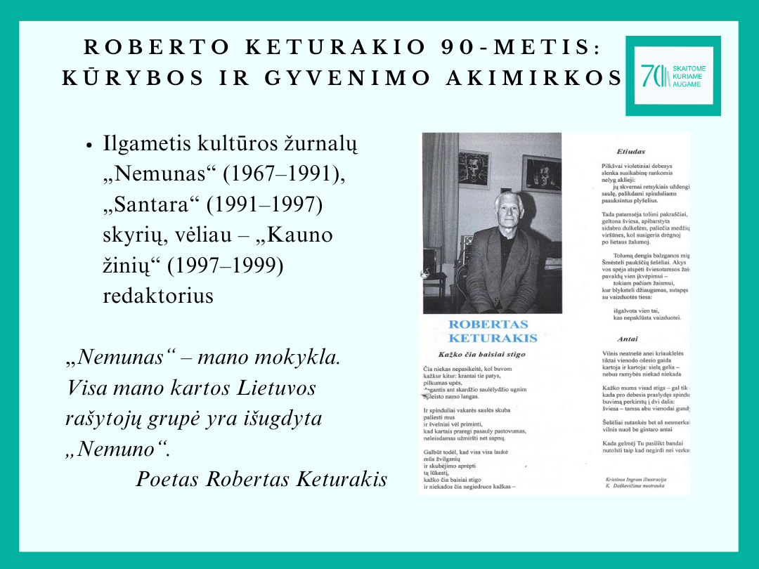 Kovo 12-ąją minėsime garbaus lietuvių poeto Roberto Keturakio 90-ąsias gimimo metines.