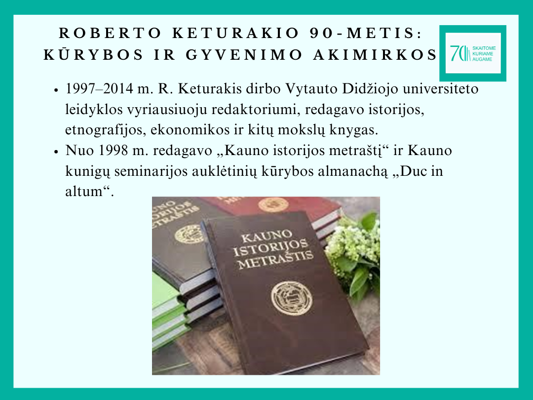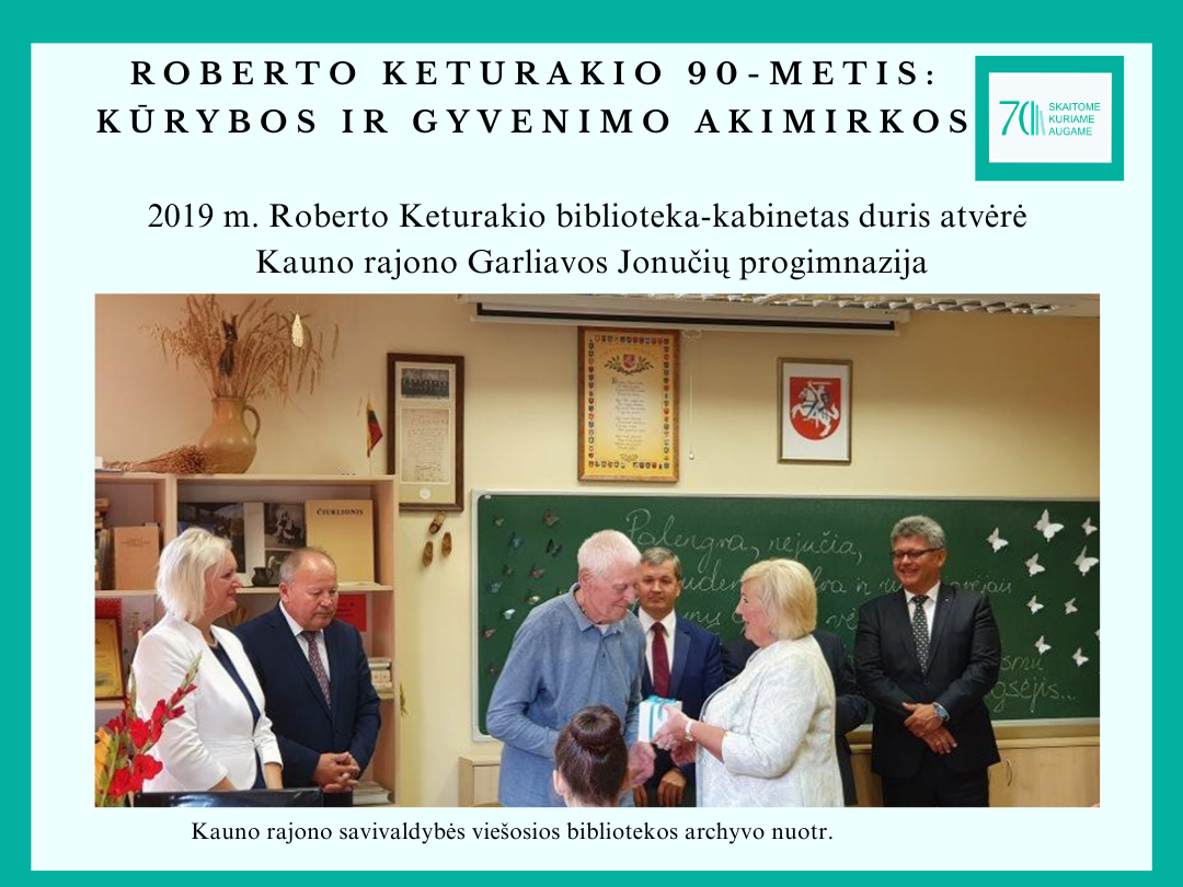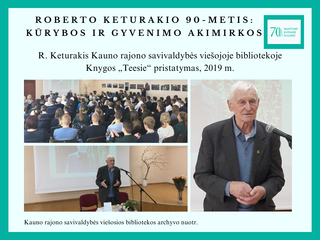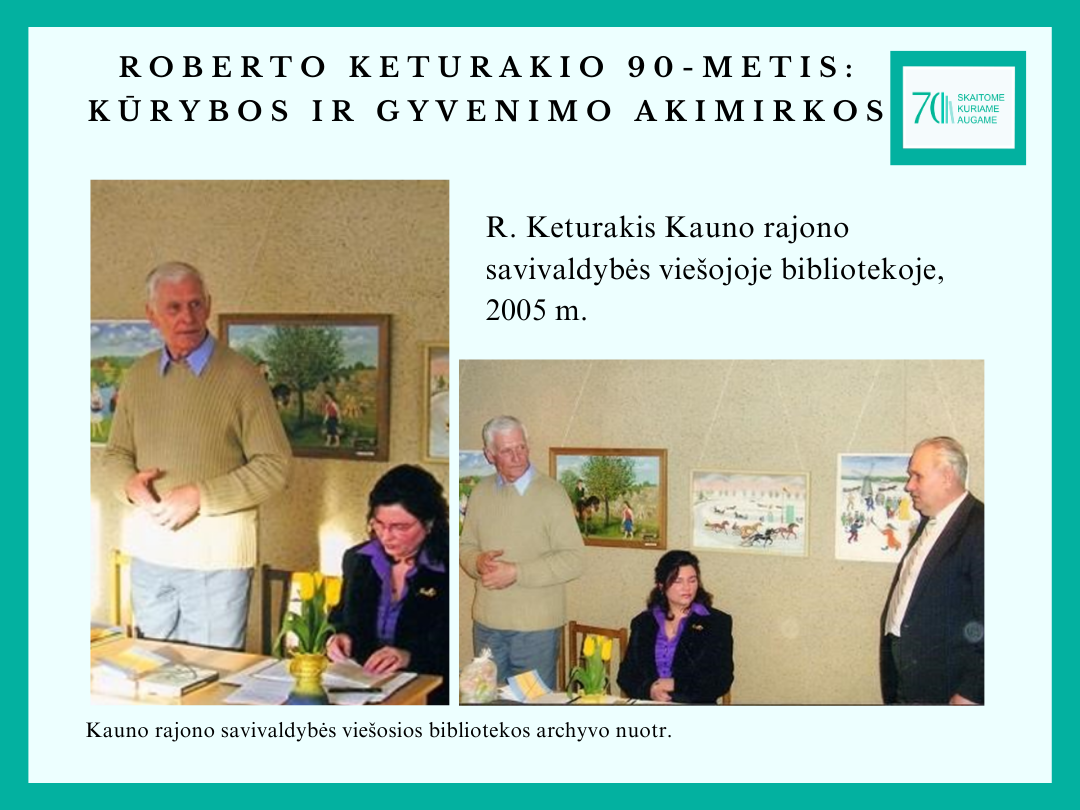 Vyr. bibliotekininkė Virginija Tamašauskienė pristato įsimintiniausias Roberto Keturakio gyvenimo ir kūrybos akimirkas.