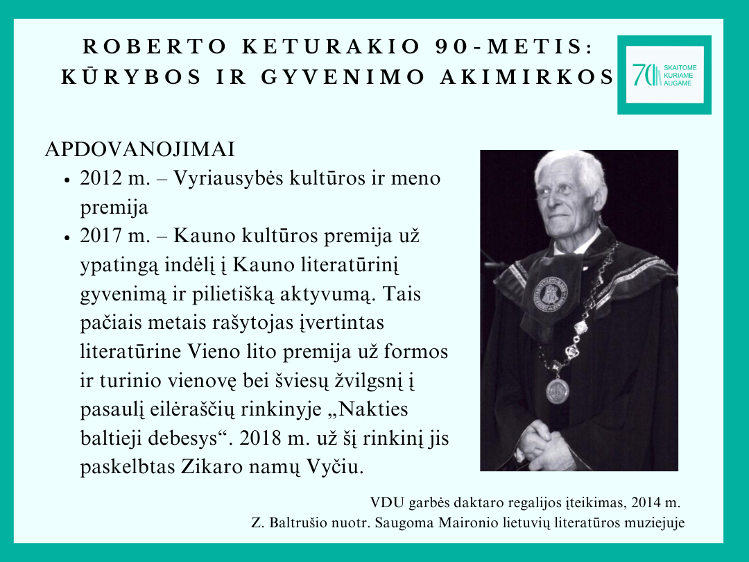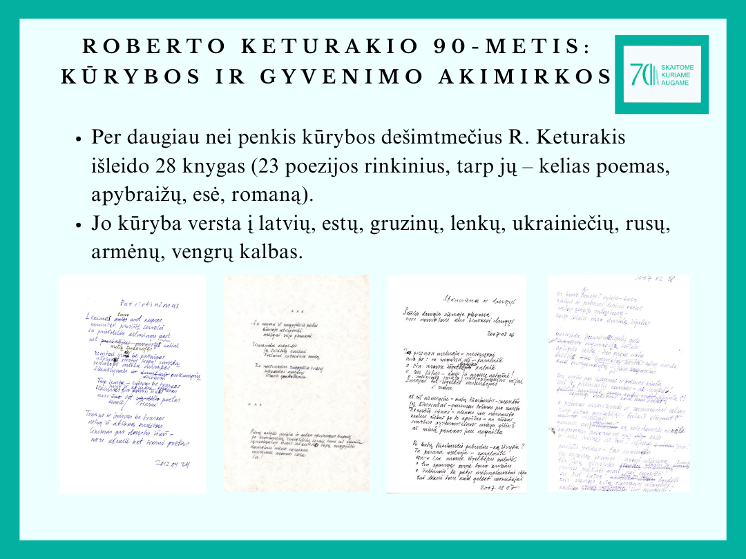 Roberto Keturakio 90-metis: kūrybos ir gyvenimo akimirkos