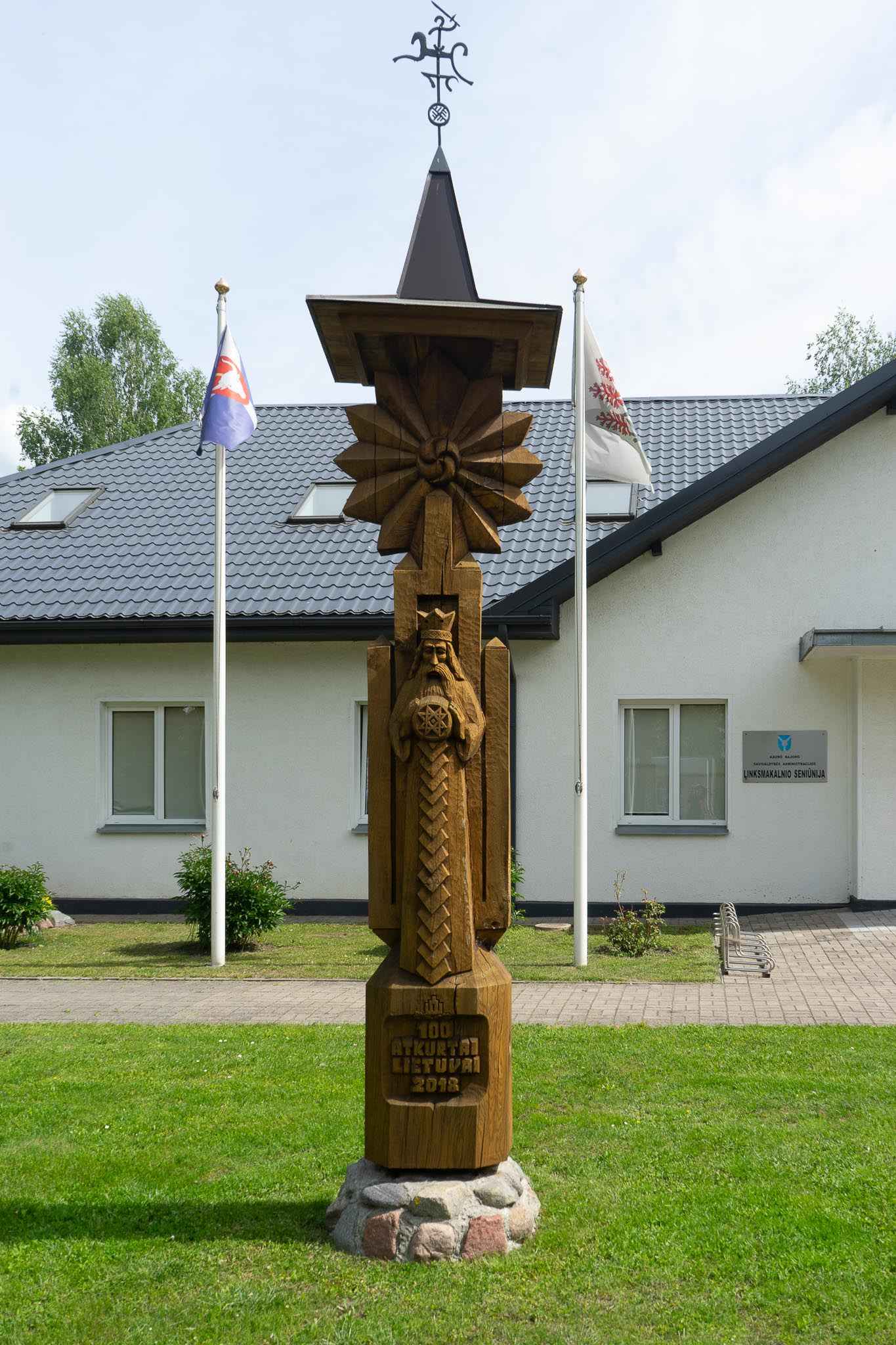 2018 m. prie Linksmakalnio seniūnijos pastatytas stogastulpis „Atkurtai Lietuvai 100“. Etnokultūrinių simbolių turinčios skulptūros autorius tautodailininkas Algimantas Sakalauskas.